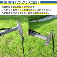キャンプでのテント設営やシェード設営時のペグの打ち込み、ペグの引き抜きがこの一本でできます。