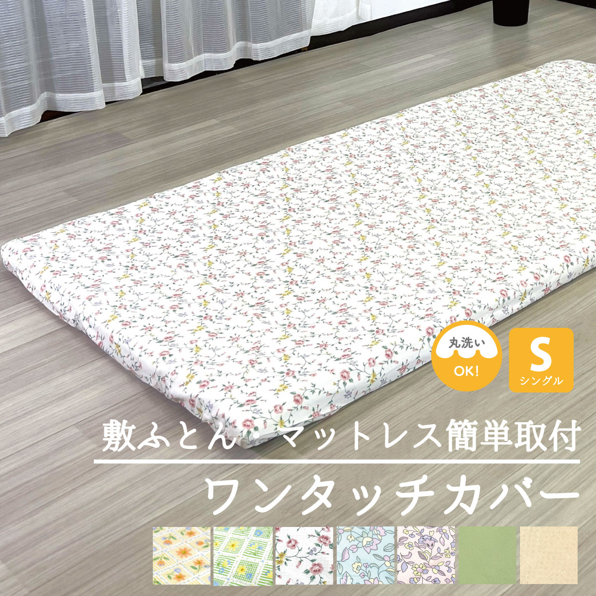 ワンタッチシーツ シングル シーツ マットレス 薄型マットレス 布団用 敷き布団用 カバー 綿 かわいい 花柄 無地 丸洗い まとめ買い 簡単装着 ワンタッチ