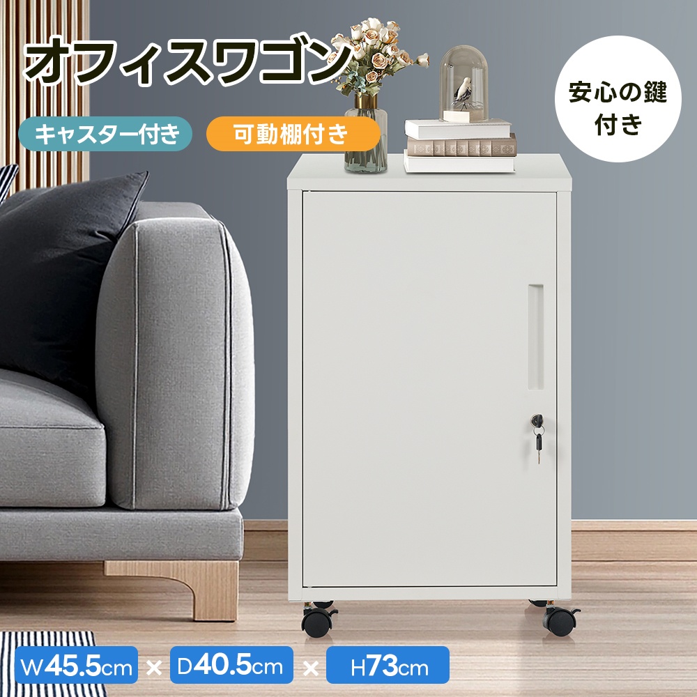 【日曜日限定★全品5%OFFクーポン配布中】デスクワゴン サイドワゴン オフィスワゴン キャスター付き キャビネット 書庫 スチール製 机下収納 袖机 可動棚