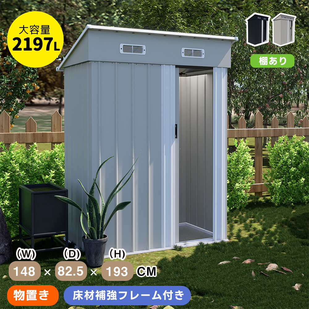 特価セール17980円! 物置き 屋外 戸外収納庫 物置 大型 スチール 床材補強フレーム付き 倉庫 床なし 収納庫 可動棚あり 屋外物置 防さび ベランダ 防水