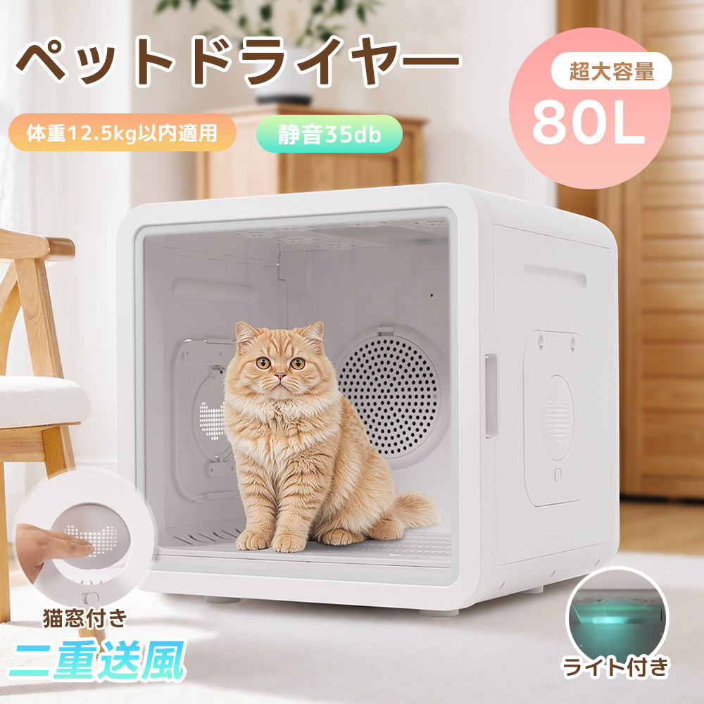 【新春祭!最大5%OFFクーポン利用可能】ペットドライルーム 80L ペットドライヤー 猫 犬 乾燥 乾燥箱 静音 自動 ペットハウス 5種類モード ドライヤー ボ