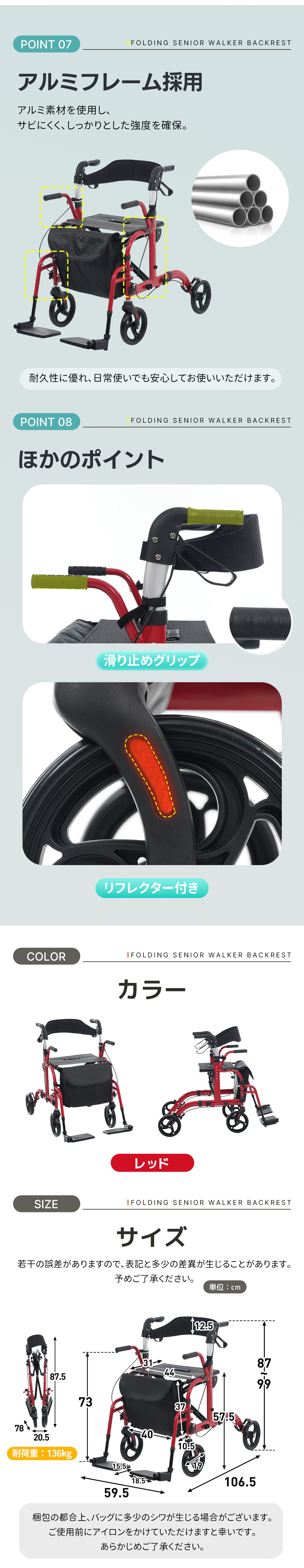 軽量アルミ製 歩行器 シルバーカー 6段階高さ調整 バッグ付き 折りたたみ 座面付き 四輪 シニア向け 歩行補助 車椅子 散歩?買い物用 歩行補助 買い物