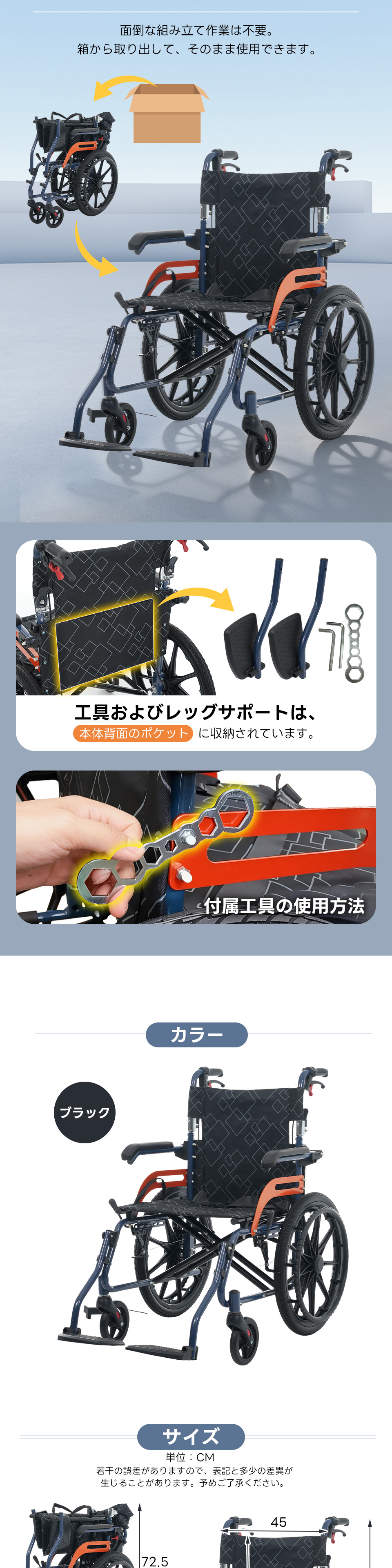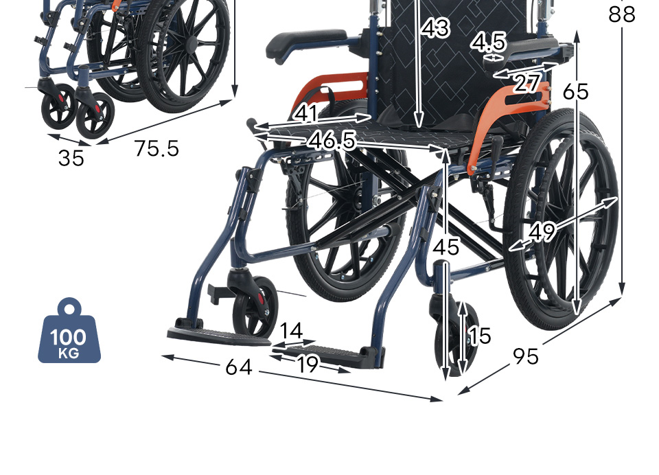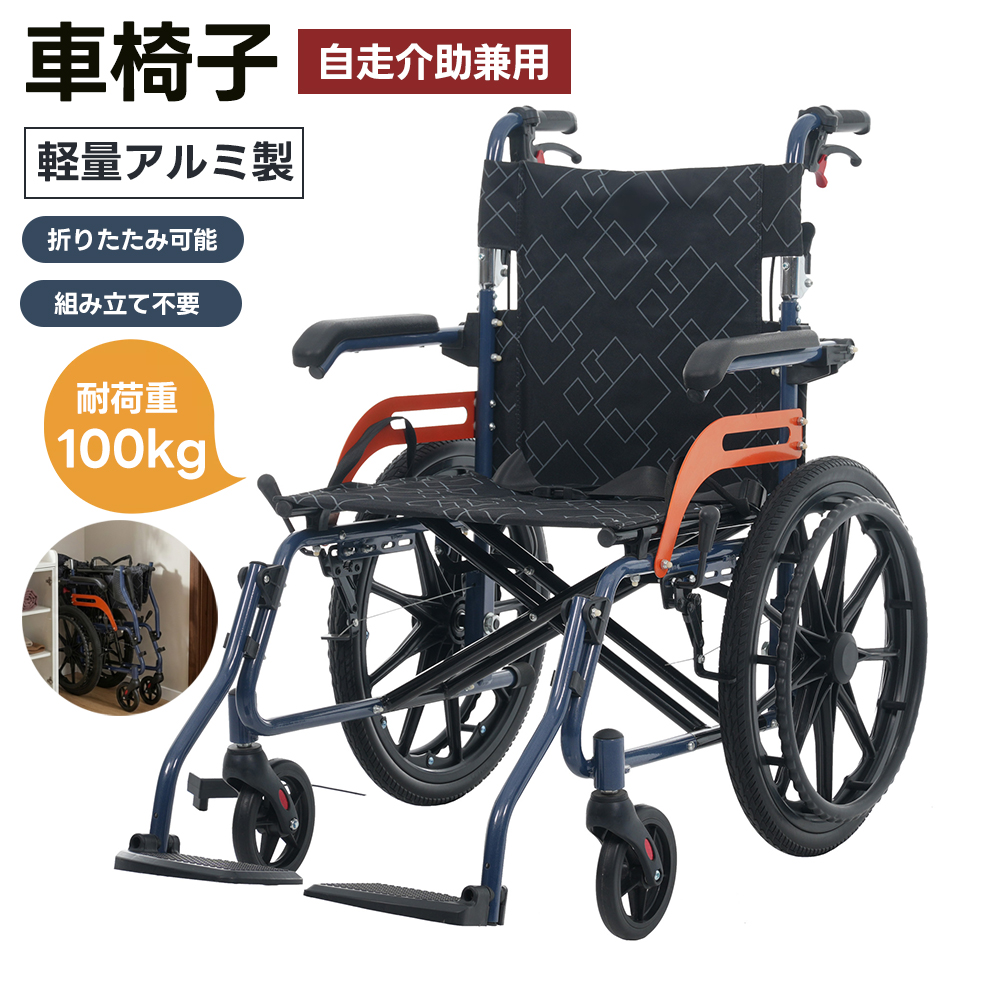 車椅子 アルミ製 軽量 完成品 四輪 自立可能 防水生地 ノーパンクタイヤ 介助ブレーキ付き コンパクト 折りたたみ可能 座面付き 四輪 介助用 キャスター付き 介護用品 自立式 軽量車椅子 おしゃれ 介護 福祉用具 耐荷重100kg 新品