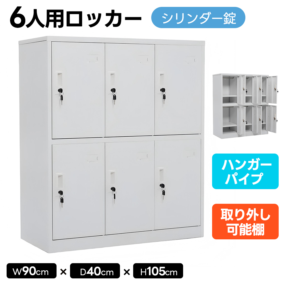 ロッカー スチールロッカー オフィスロッカー 6人用 鍵付き シリンダー錠 スペアキー付 名指し枠 ハンガーパイプ 取り外し棚 オフィス 更衣室 鍵付きロッカー 高耐久 収納 鍵 業務用 おしゃれ 3列 2段 貴重品ロッカー
