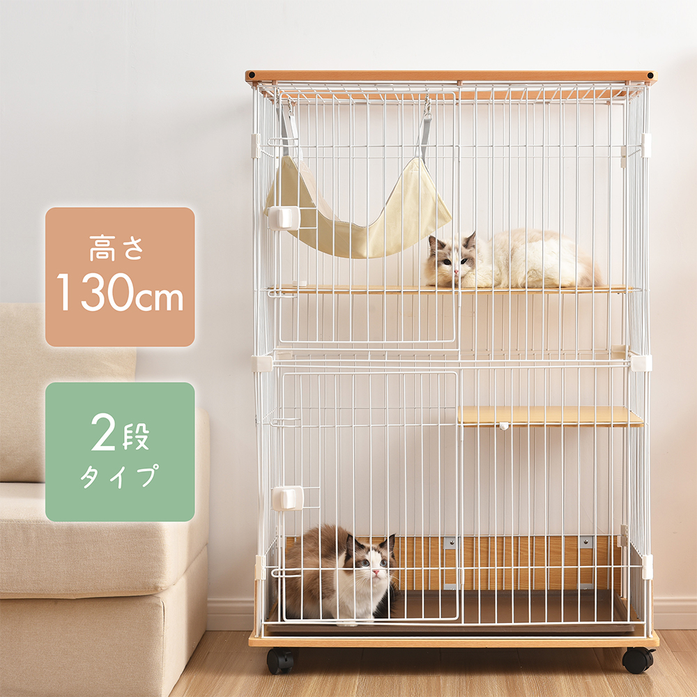 【新春祭!最大5%OFFクーポン利用可能】猫 ケージ 2段 キャットケージ 木製フレーム ハンモック付 キャットケージ 猫ドア付き キャットハウス ネコ ハウ