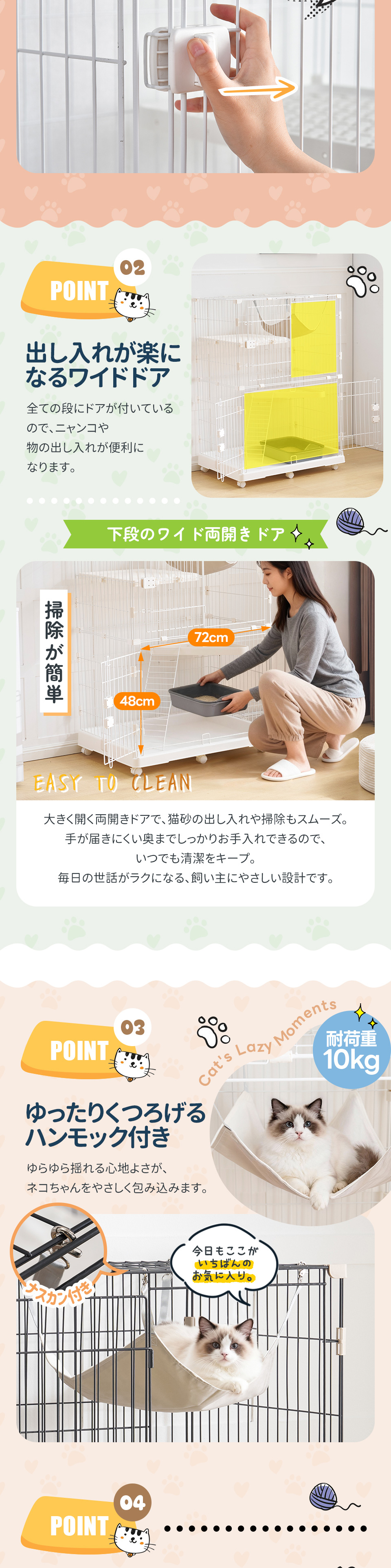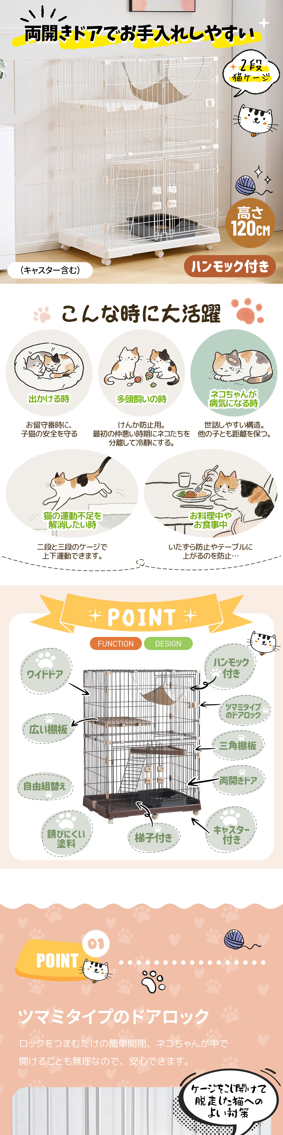 【2025年新仕様】2段キャットケージ 高さ120CM ハンモック付き 両開きドアでお手入れしやすい