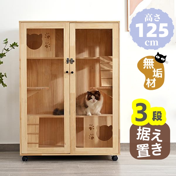 【新春祭!最大5%OFFクーポン利用可能】猫 ケージ 3段 キャットケージ 猫ハウス木製 おしゃれ キャットハウス ネコ ハウス 多段 留守番 保護 脱走防止