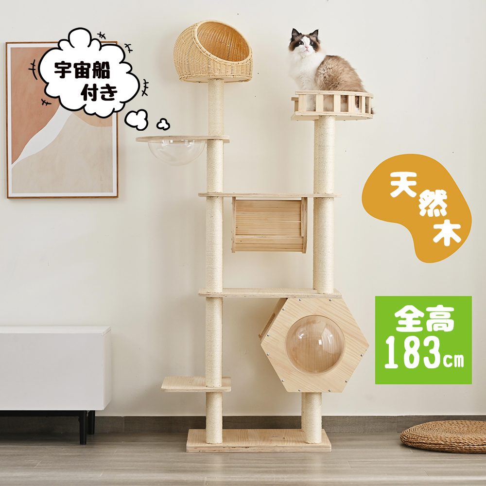 【新春祭!最大5%OFFクーポン利用可能】キャットタワー 据え置き 木製 猫タワー 多頭飼い 高さ183cm 宇宙船付き 安定性抜群 トンネル付き おしゃれ 可愛