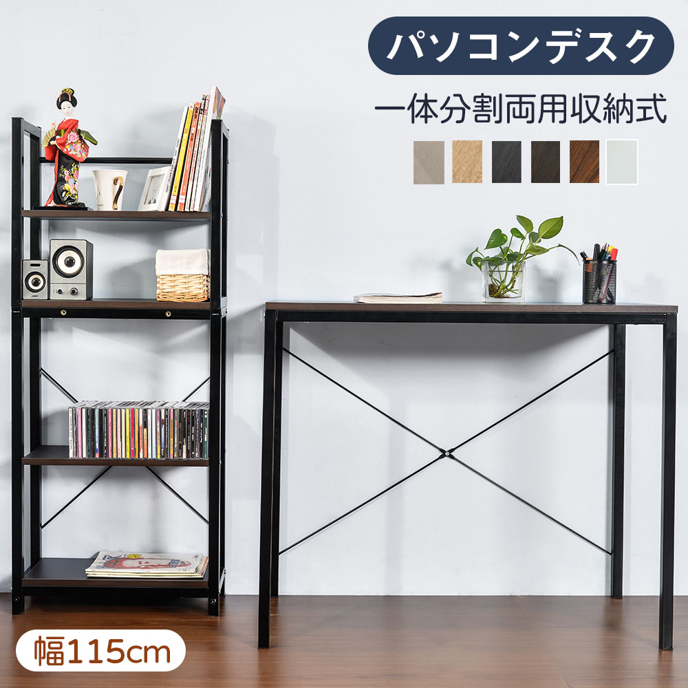 【爆買WEEK+5%★4/19迄】パソコンデスク 一体分割両用 机 デスク 書斎デスク 学習机 PCデスク 収納付き 木製 勉強机 ハイタイプ 収納付き