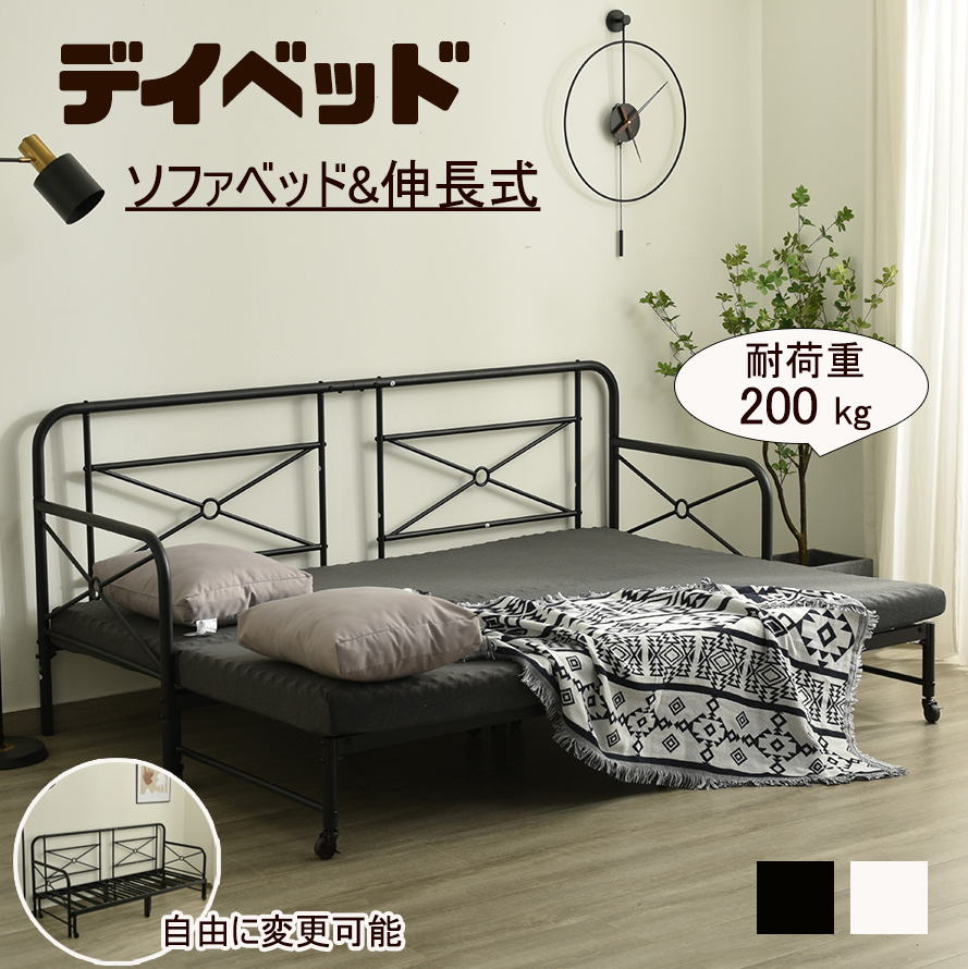 デイベッド ソファベッド シングル 一人暮らし 頑丈 省スペース 耐荷重200kg フレーム パイプベッド シングルベッド 伸長式 セミシングル