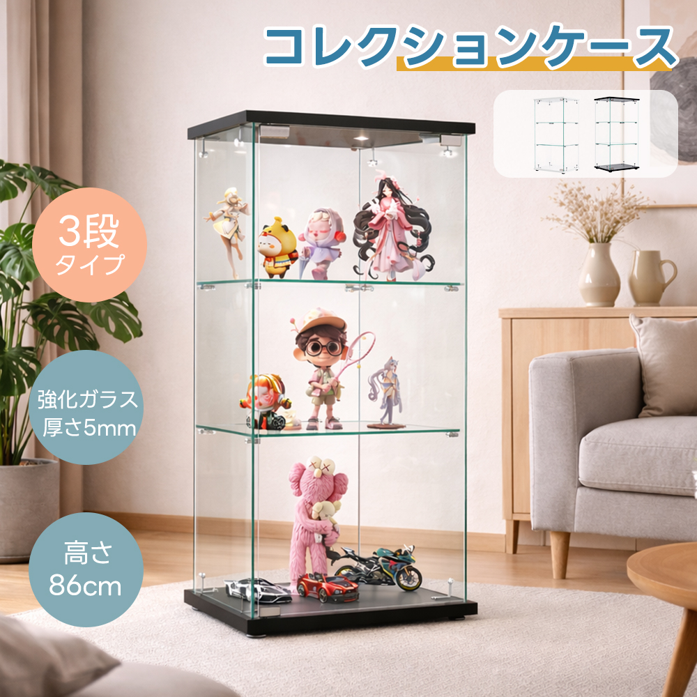 コレクションボックス 3段 ガラスディスプレイキャビネット フィギュアケース コレクションボード コレクションケース 強化ガラス ガラスケース おしゃれ 透明