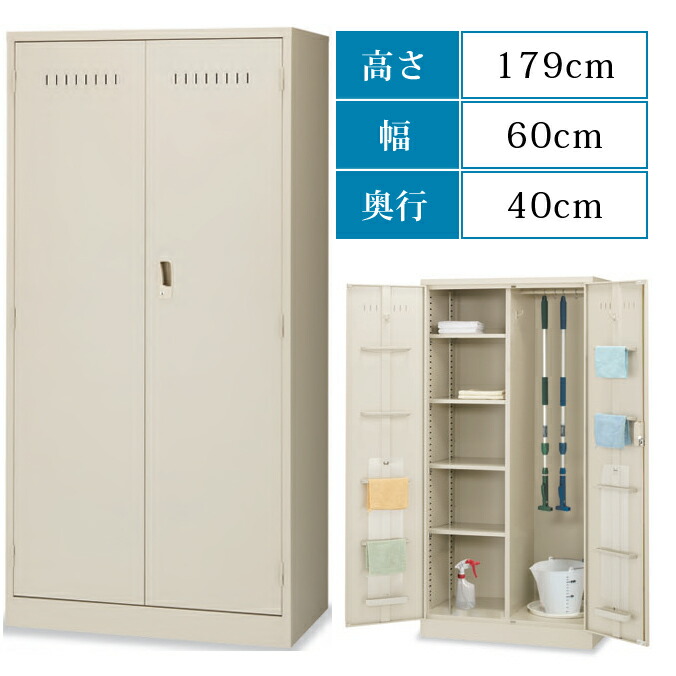 耐久性抜群! 丈夫なスチール製の清掃用品収納庫で清掃用品をスッキリ整頓できます。