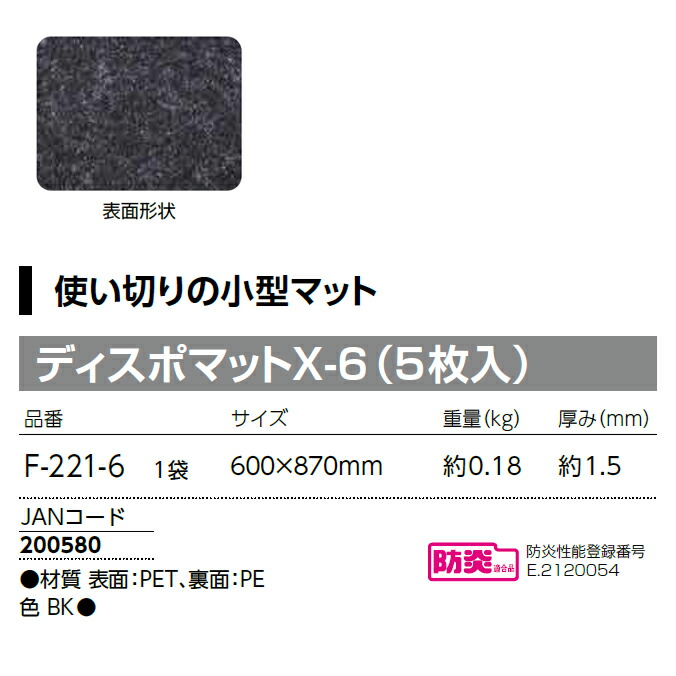 吸油 吸水 ディスポマットX-6(5枚入) 山崎産業 F-221-6 油 食品工場 水 床 使い切り