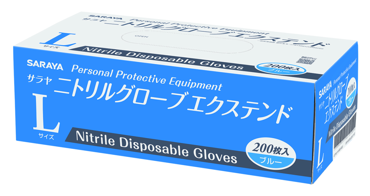 サラヤ ニトリルグローブ エクステンド ブルー ラテックスフリー&パウダーフリー 200枚入 ゴム手袋 粉なし 洗い物 お掃除 介護 清拭 食品加工