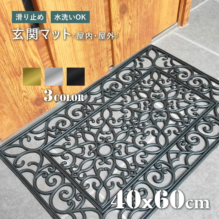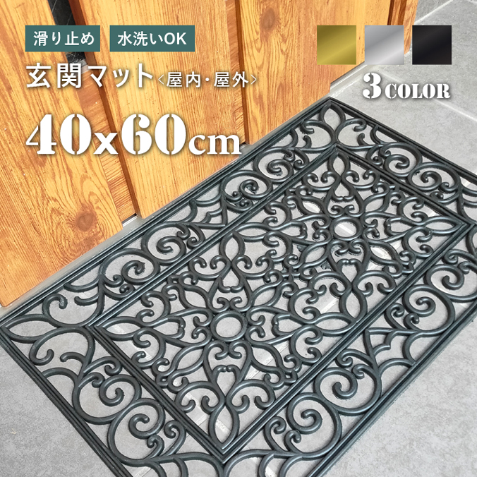 玄関マット おしゃれ 屋外 ラバーマット 北欧 泥落とし 洗える 屋内 水切り ラバー ウェルカムマット ドアマット 店舗 ブラック ゴールド シルバー 40×60cm