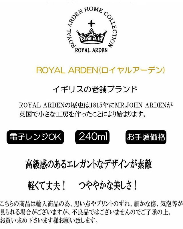 人気の【ROYAL ARDEN ロイヤルアーデン】 ボーンチャイナ カップ&ソーサー です。