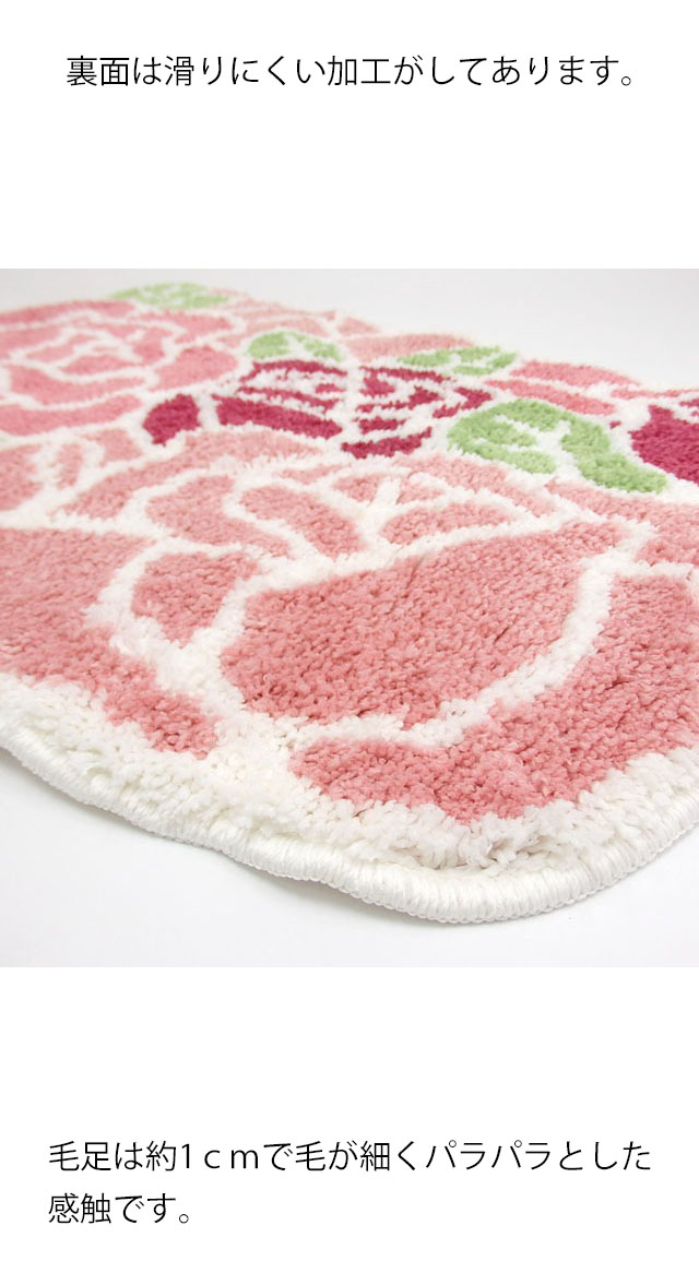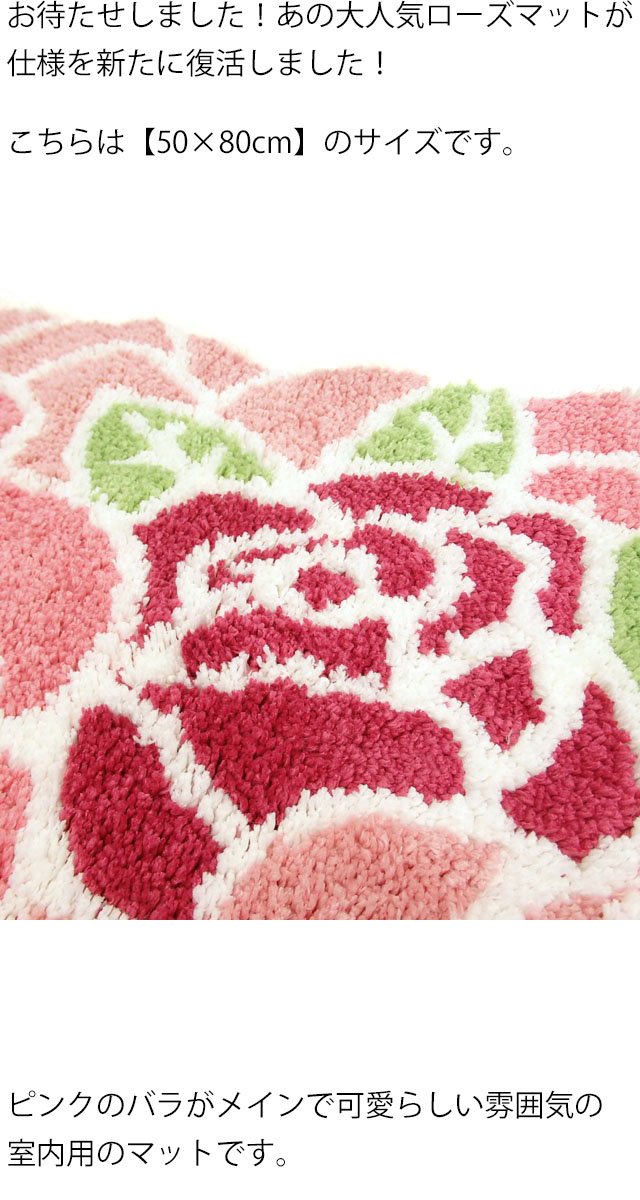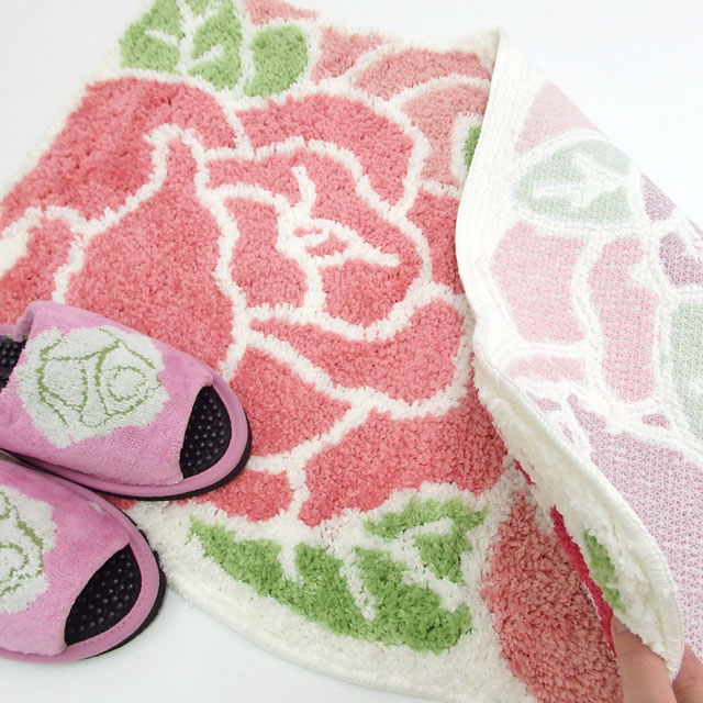 ピンクのバラがメインで可愛らしい雰囲気の室内用のマットです。
