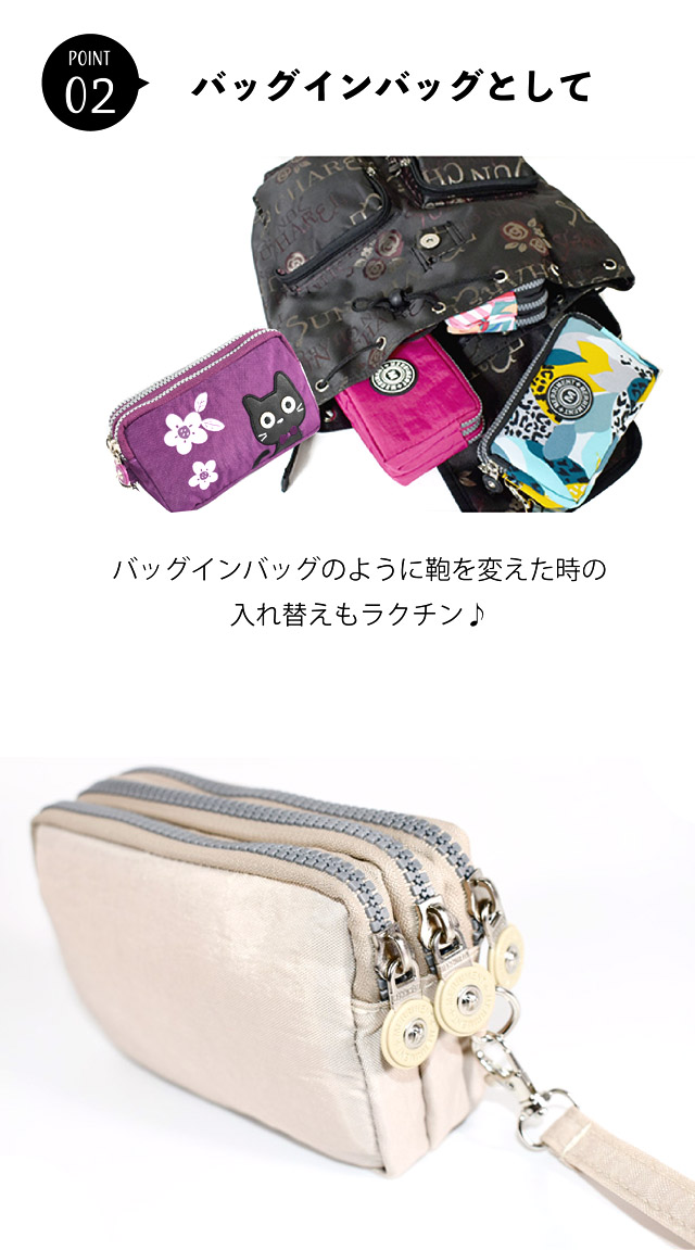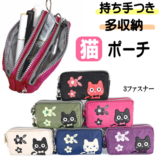 ポーチ 化粧ポーチ カジュアル 猫柄 レディース トリプルジップ 仕分け ストラップ付誕生日 軽量 便利 ギフト プレゼント 爆買