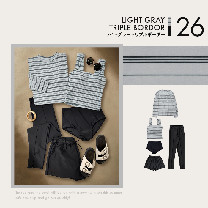 洋服のように気軽に着られるスポーティカジュアルデザインのセット水着。