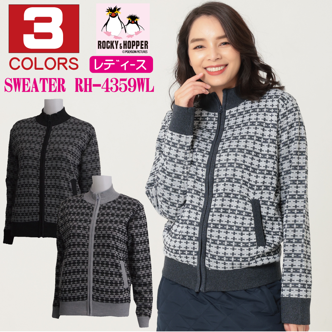 ゴルフウェア レディース フルジップ 防風 セーター RH4359WL ROCKY&HOPPER ロッキー&ホッパー 2022年秋冬モデル おしゃれ 裏地付き