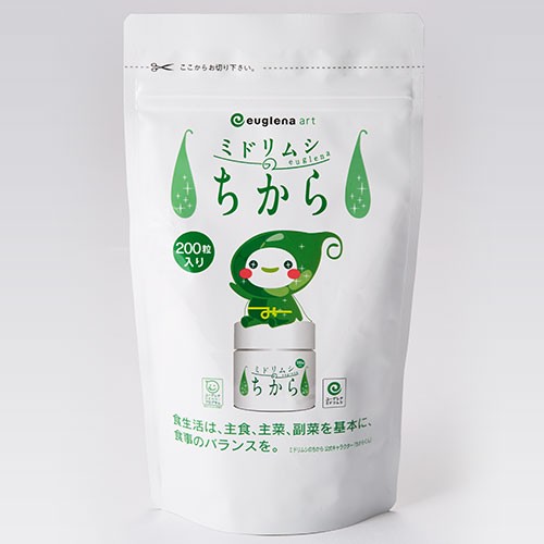 | 成分 | ユーグレナグラシリス、コエンザイムQ10、酵母エキス末、酵母、有胞子性乳酸菌、α-リポ酸、ゼラチン、ステアリン酸Ca、二酸化ケイ素、 着色料(ベニバナ黄色素、クチナシ青色素) |