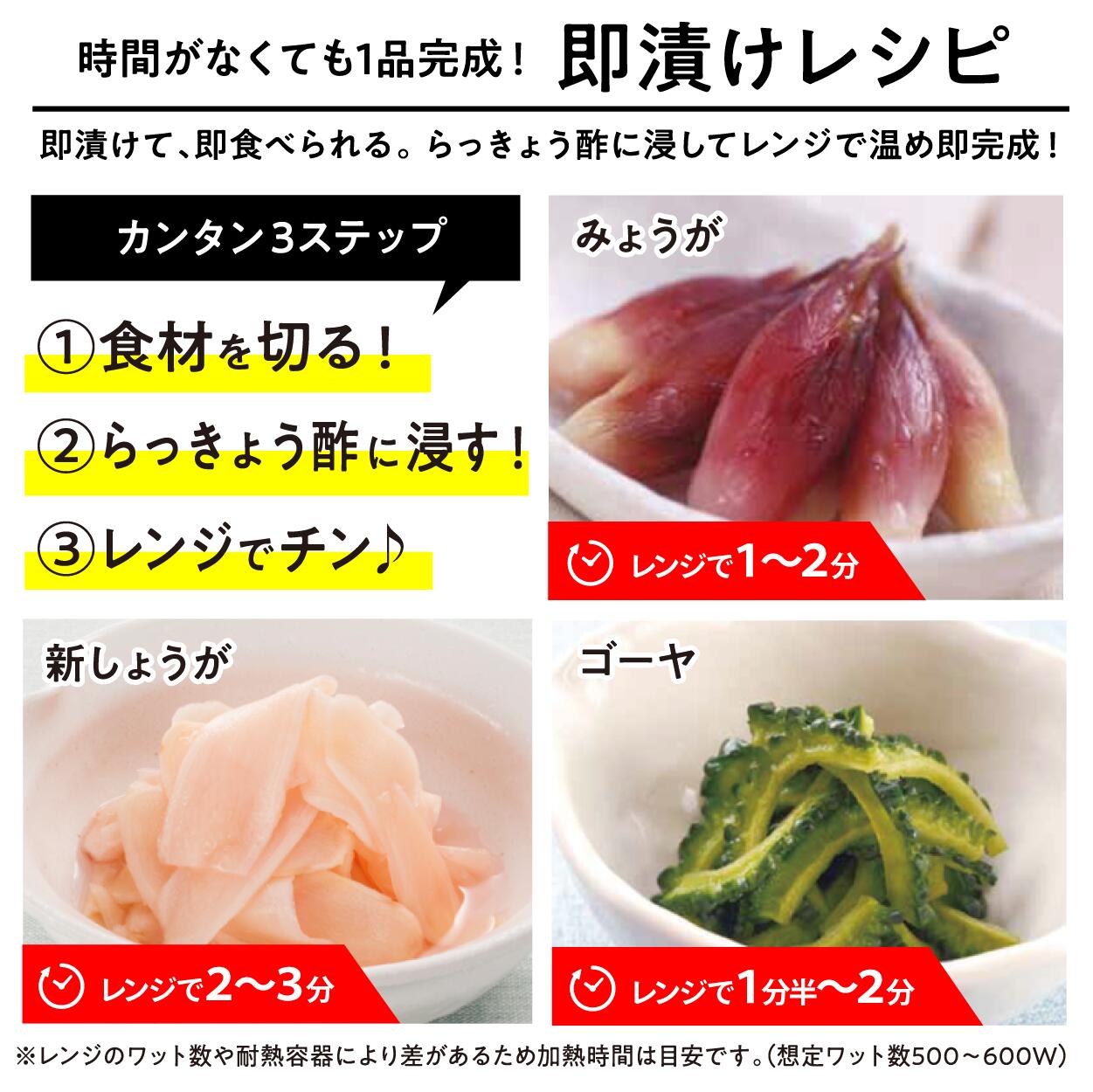 漬け込むだけでらっきょう漬が手軽にできます。他にも青梅、新しょうが、みょうが等幅広くお使いいただけます。