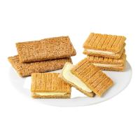 原産国:日本原材料:小麦粉(国内製造)、チョコレート、バター、ライ麦粉、加工油脂(精製加工油脂、植物油脂)、小麦全粒粉、粉糖、砂糖、からす麦、パン粉、脱脂粉乳、食塩、酵母、コーングリッツ/乳化剤(大豆由来)、香料、酸化防止剤(V.E)、イーストフードアレルギー物質:小麦・乳・大豆栄養成分表示(個装当たり):熱量83kcal、たんぱく質1.3g、脂質4.7g、炭水化物8.9g、食塩相当量0.16g内容物:シュガーバターサンドの木10枚常温保存可賞味期限:25日