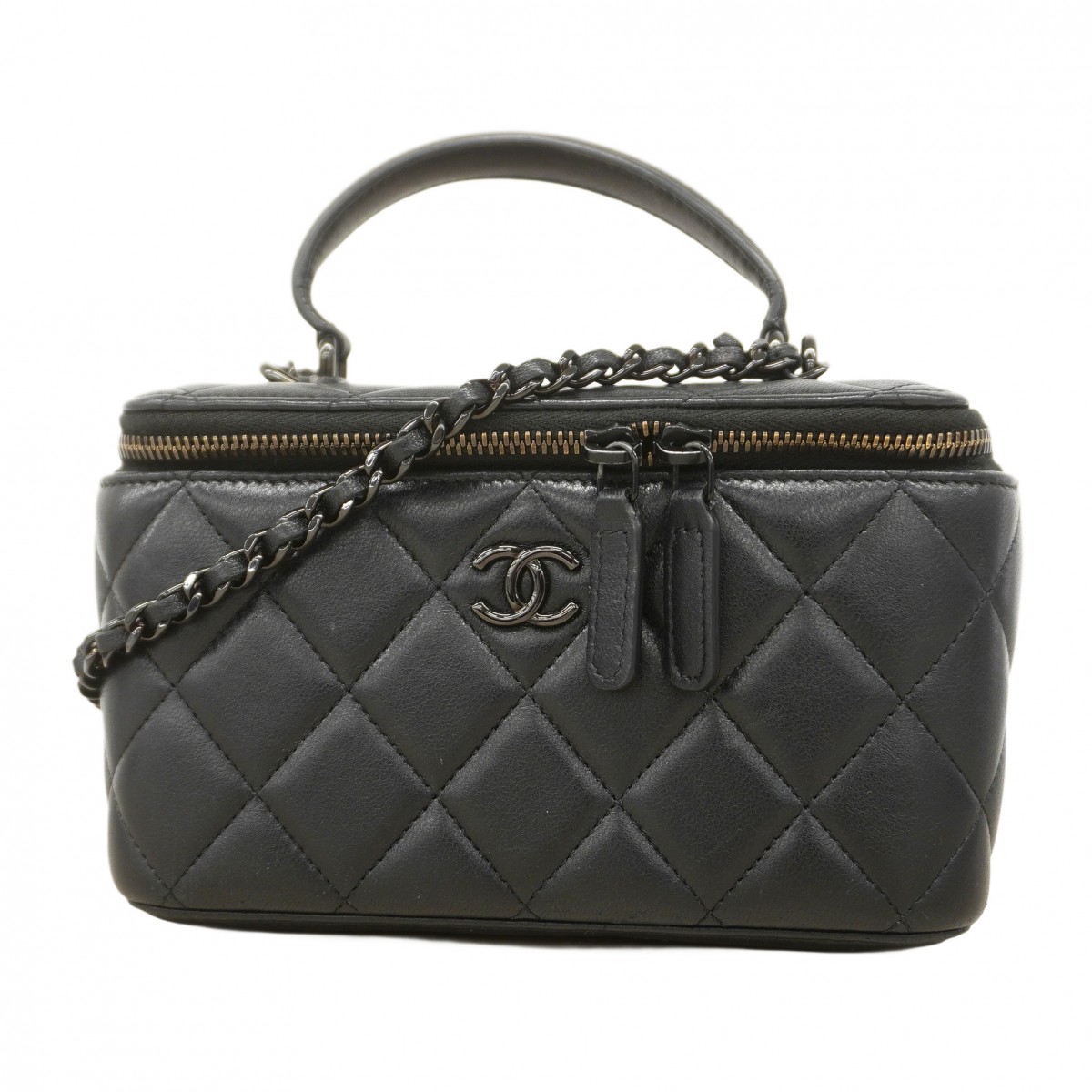 ★最終価格★SALE 【6bc3730】シャネル バニティバッグ マトラッセ チェーンショルダー ラムスキン ブラック【中古】レディース