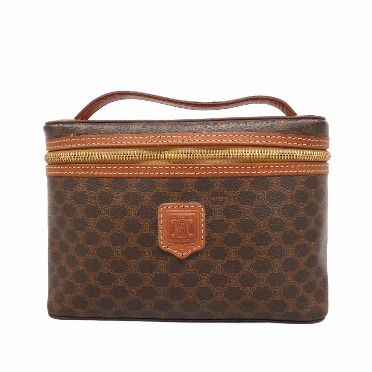 【6ca0229-k】セリーヌ バニティバッグ マカダム PVC ブラウン ゴールド金具【中古】レディース