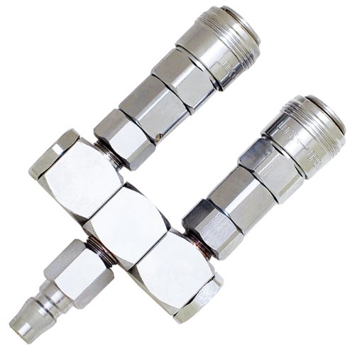カチッとひと押しワンタッチ接続。1つの配管から2つの配管口にエアを分岐。2ヶ所のジョイントが360℃回転し、」作業状況に合ったソケット・プラグの設定が可能。作業中の予期せぬ分離を防止するロック機構付。