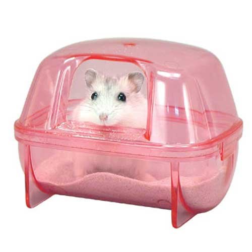 小さなジャンガリアンハムスターやロボロフスキーなどのドワーフハムスター用の砂浴びハウスです。 砂浴びをしても砂が常に底中央に集まるので、 砂の量も少量で済みます。 【サイズ】 W100×D73×H73mm 【メーカー】サンコー