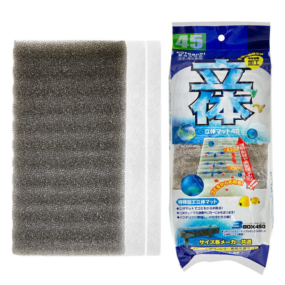 立体マット採用で表面積UP! コトブキ工芸 立体マット45 3枚セット 対象コトブキ トリプルボックス450特長●波形形状の立体マットで表面積がアップ!!飼育水のゴミをからめ取ります。●立体マットでろ過槽内に均一に水を送ります!●ろ過バクテリアの繁殖にも優れた効果を発揮し、水の汚れを分解します。●サイズ各… アクアリウム用品 アクア用品 ろ材 ウールマット 上部フィルター用 コトブキ 立体マット45 3枚セット 器具 lakic11 ynost88 コトブキ工芸 20110622 TT2 _aqua_maker_kw 4972814531697 立体マット45(上部フィルター用) 寿 KOTOBUKI