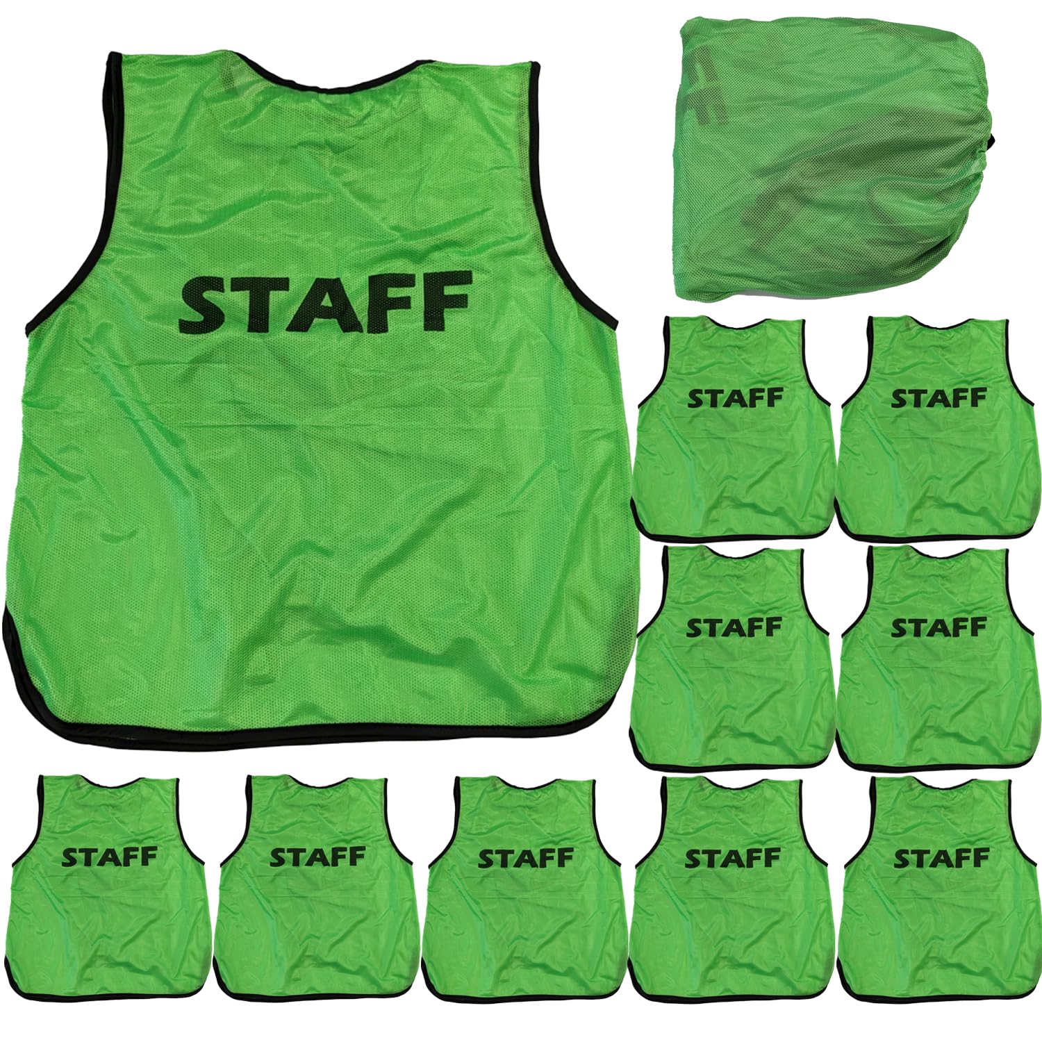 Fungoal ビブス 『STAFF』 前後プリント付き 10枚セット 収納袋付き [グリーン 緑] [フリー 大人] 【大会運営 イベントのスタッフ