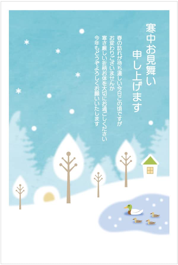 [メイドインたんたん] 5枚入 寒中見舞いはがき ポストカード pka-012 カモさん親子の冬 切手なし 裏面印刷済み 私製はがき
