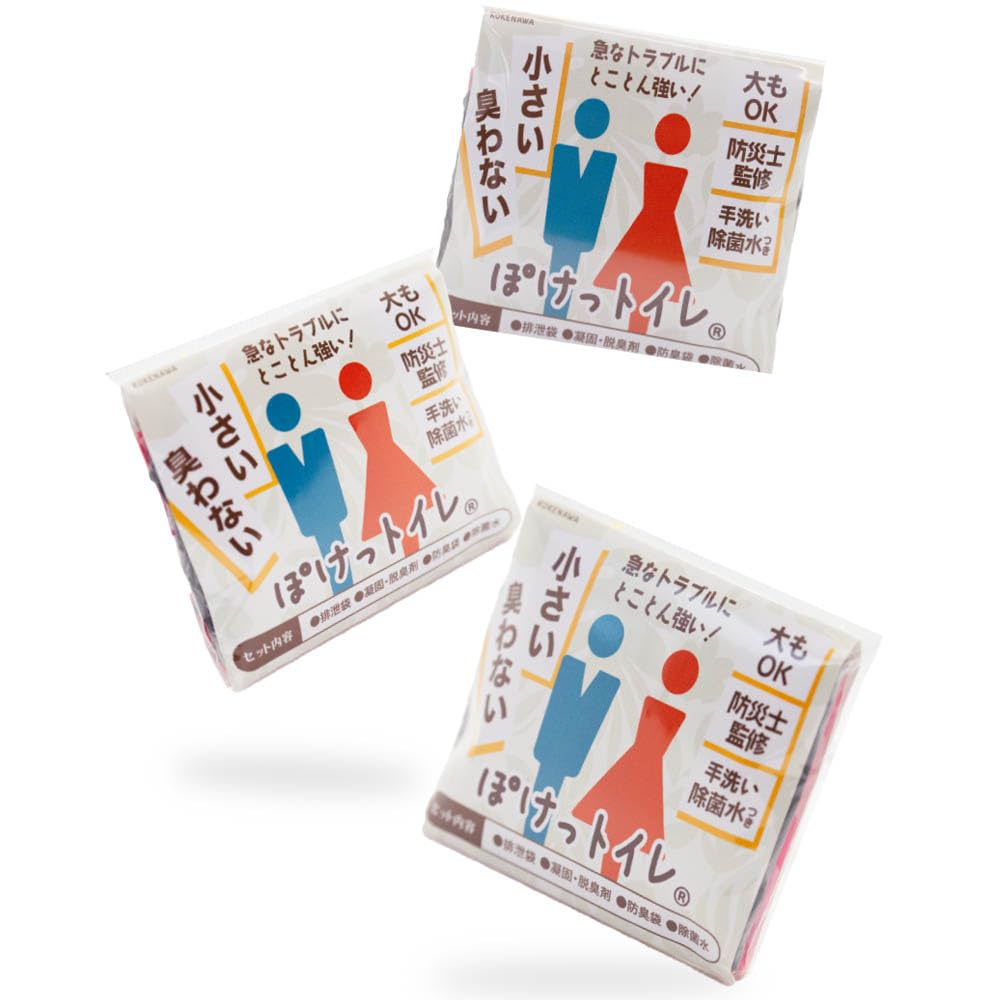 【防災グッズ大賞2024受賞】 ぽけっトイレ 3個 【世界最小クラス】 携帯 簡易 防災士監修 凝固・脱臭剤 大容量排泄袋 防臭袋 除菌水 釣り キャ
