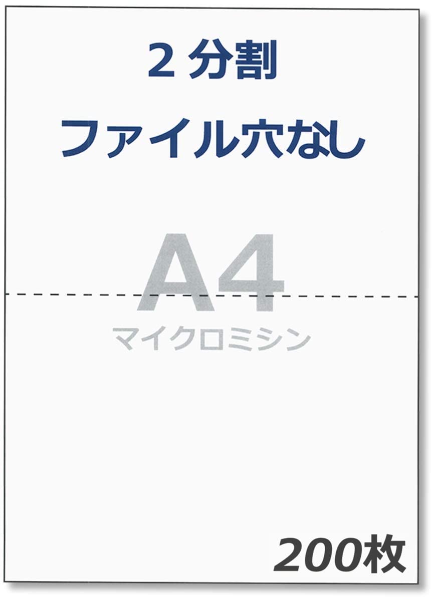 商品名:ペーパーエントランス プリンタ 帳票用紙 A4 コピー用紙 2分割 穴なし ミシン目 領収書 納品書 200枚 55107