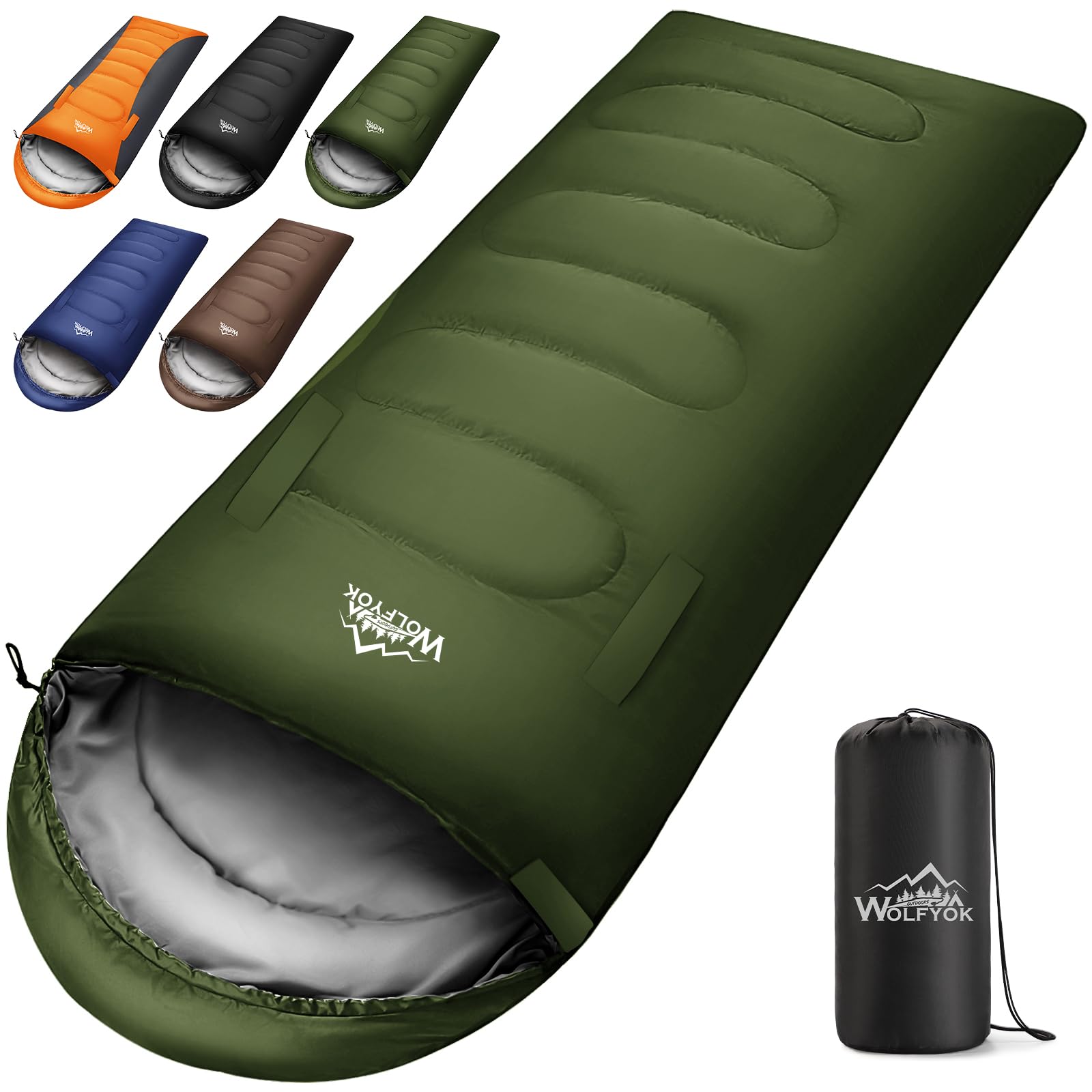 ??【オールシーズン寝袋&寝心地が良い】?wolfyok outdoors寝袋は-15°Cから25°Cまですべての季節に使用できるオールシーズン寝袋です。ニーズや季節に応じて適切なキャンプ用寝袋をお選びいただけます。 春夏用の寝袋としては1.1kg、春秋用の寝袋としては1.4kg、秋冬用の寝袋としては1.8kg、冬用の寝袋としては2.2kgを選ぶのがおすすめです。?布団に近いゆったり感が魅力の封筒型寝袋です。マミー型よりもゆとりのあるサイズなので窮屈さを感じにくいでしょう。?両手両足を広げて横になれるほど広くてゆとりがあり、圧迫感はありませんでした。また、スペースがある分、ストレスなく大きな寝返りが打てます。?中綿の充填量が多いため、頭と背中のクッション性があり、包まれるような感覚が得られます。肉厚とはいえないものの、頭や背中もふかふかとした感触があります。?【実用性が抜群】夏にキャンプに行っても河原、林間、海辺など、昼と夜の気温差が大きい場所を選ぶ場合は、保温のために比較的厚い寝袋が必要です。
