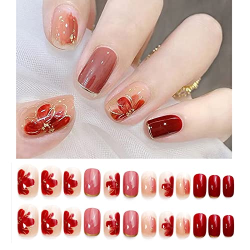 HAPVITAL 24枚入 人気ネイルチップ 付け爪 チップ ネイルチップ 手作りネイルチップ 光沢 3D 和風 花嫁ネイル 結婚式つけ爪 ネイルチッ