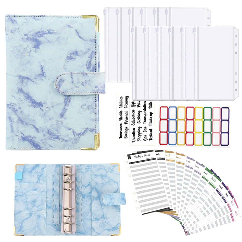 AZNABLE 家計管理 ポーチ お金管理 ファイル 6穴 家計簿 袋分け 予算管理 バインダー A6 (ブルー)