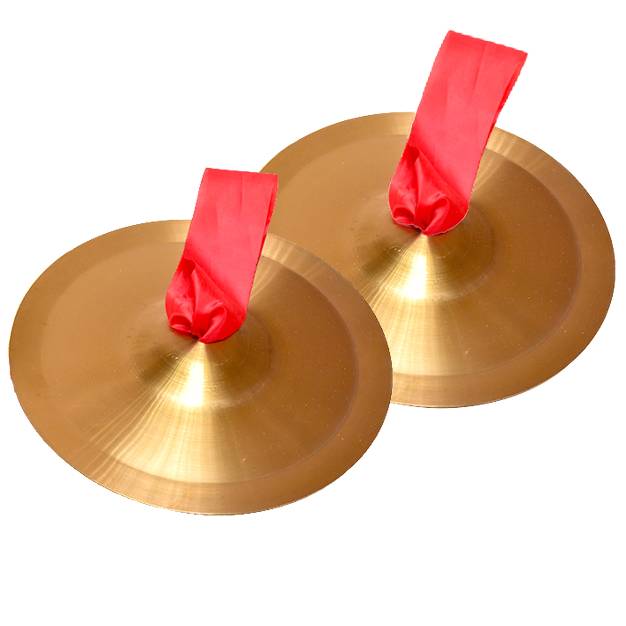 サイズ(約):約15cm 2枚1セット 材質:合金銅 重量:190g(2枚) ※赤いリボン2本が付属します。シンバルの中央の穴に通して持ち手として利用ください。