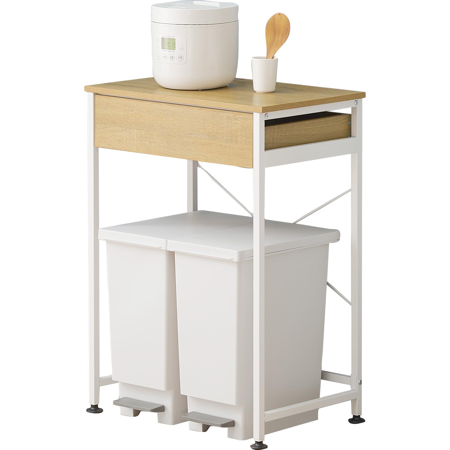 萩原 レンジラック ゴミ箱上ラック 引き出し付 【耐荷重30kg】アジャスター付き レンジ台 幅60.5 奥行45.5 高さ85cm ナチュラルホワイト