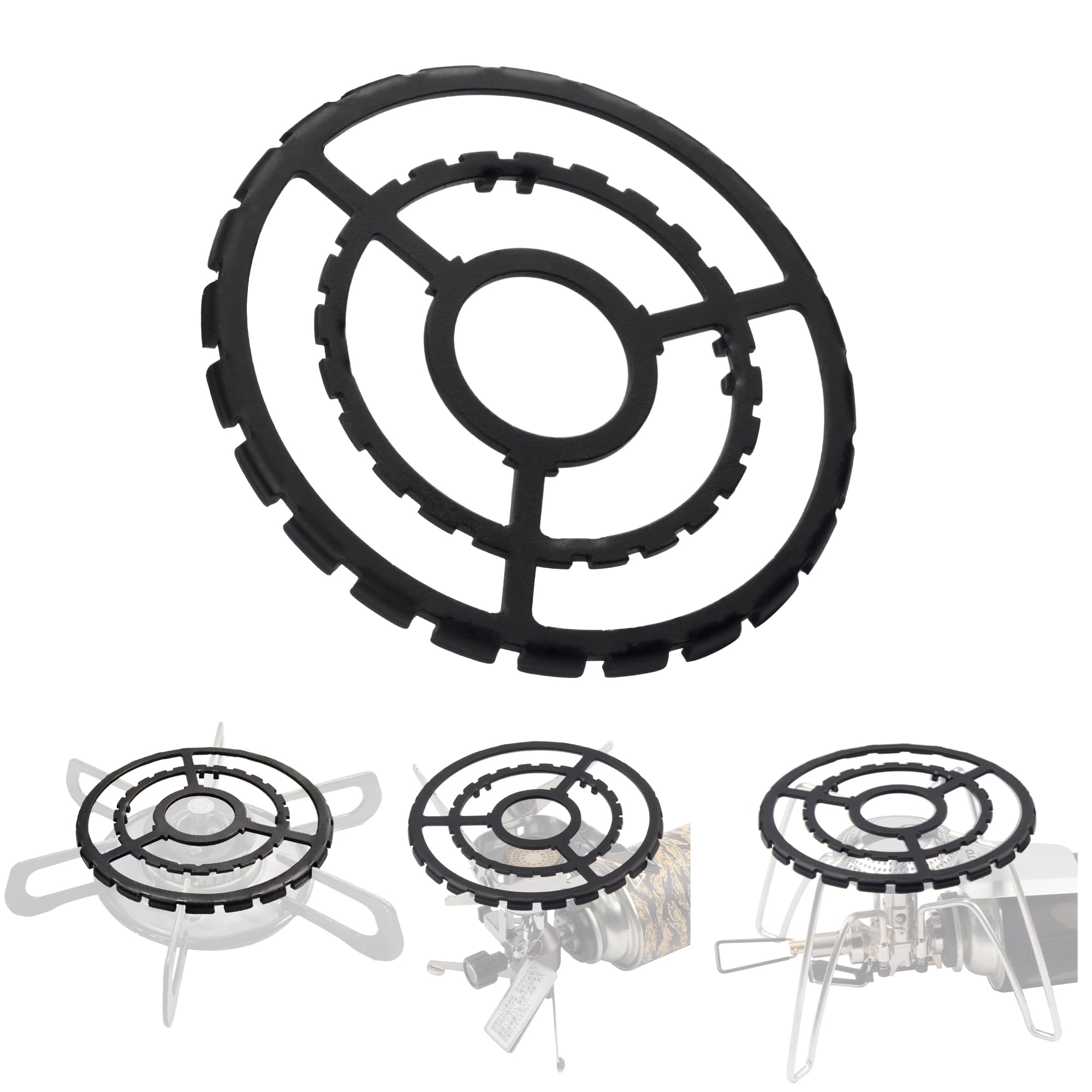 【安定性抜群】このミニ五徳は特殊溝設計で、外径溝24個、内径は4つの滑り止め爪がありますので、どんなバーナーストーブでも使用できる、汎用性が高いミニ五徳です。使う際はストーブ本来の五徳の足にセットしやすい、ズレにくく、安定性抜群! アウトドア用品としても携帯便利で使えやすいし、鍋やケトルをより安定で使える補助器具になります。見た目もお洒落で錆びにくく、お手入れも簡単。また、黒いで汚れも目立たないで使いやすいミニ五徳。