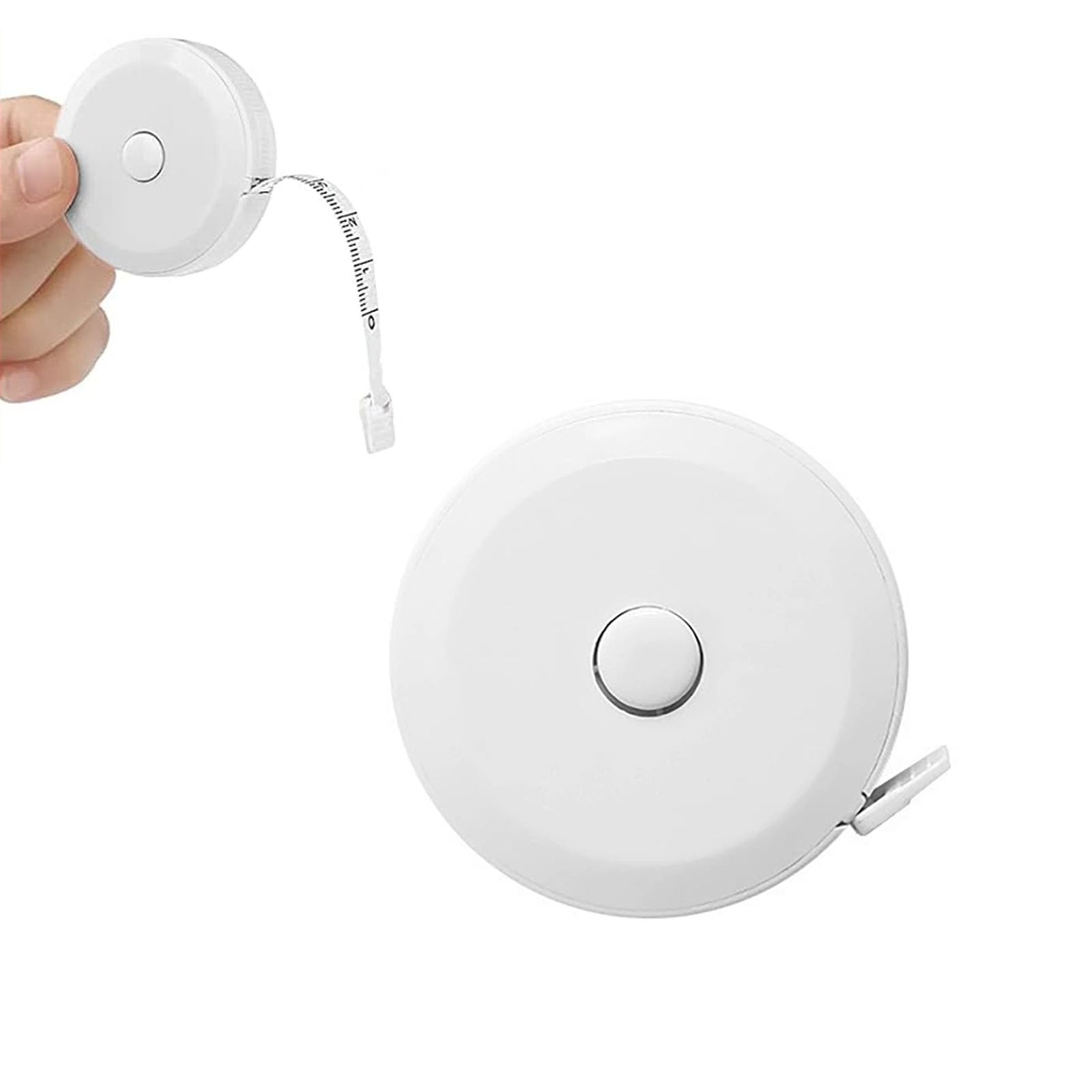 【自動巻き取り式両面目盛りメジャー】この測定用メジャーは自動巻き取り式で、中央の巻き取りボタンを押すだけで、テープが素早く自動で巻き戻ります。巻き取りボタンを押し続けながらスムーズに引き出すことができ、希望の位置でボタンを離すとそこで止まります。メジャーは両面目盛りで、片側はセンチメートル、もう片側はインチ単位で精密に印刷されています。最大200cm(79インチ)までの測定が可能です。