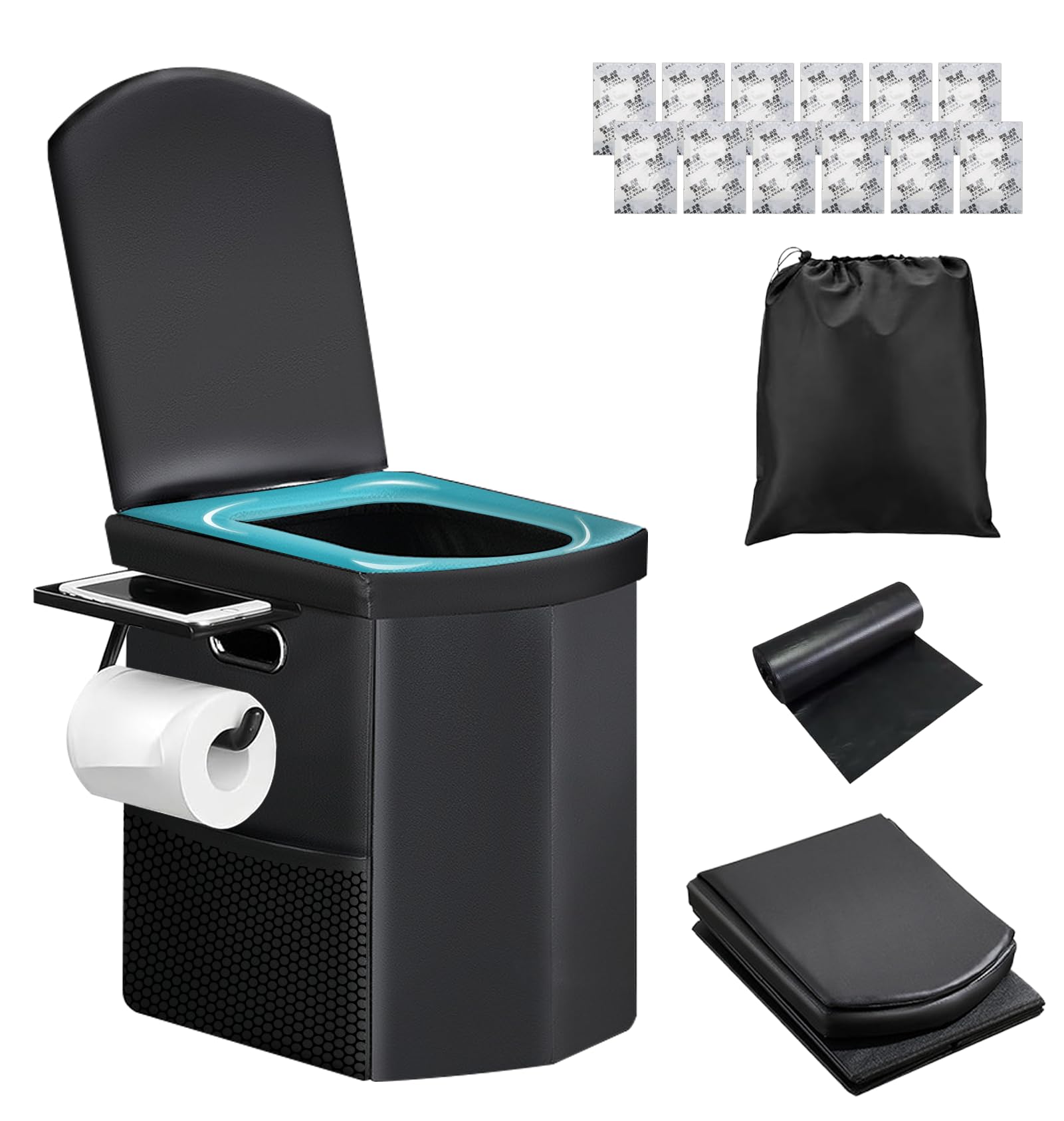 商品名:簡易トイレ 災害用 携帯トイレ 折りたたみ 防災グッズ 【業界最高クラス42cm座面|PUレザー】 ポータブルトイレ 非常用トイレ 超耐荷重150kg 車用/車中泊/キャンプ用品/災害時/介護用 凝固剤/ゴミ袋/防水収納バッグ付