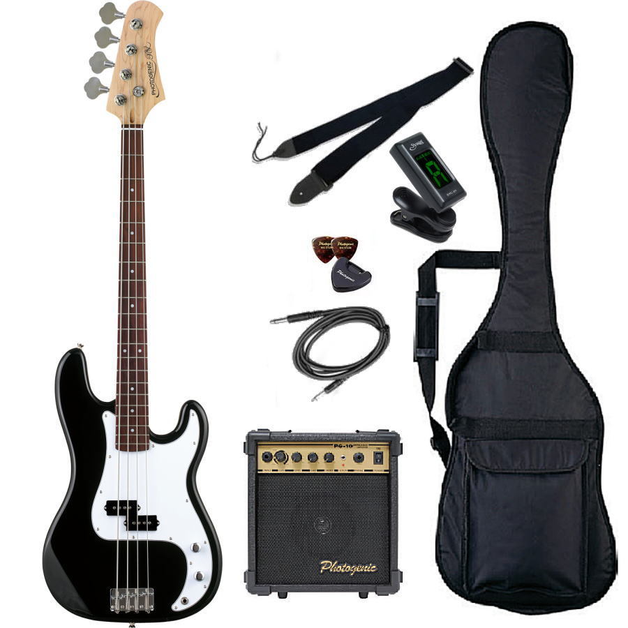 エレキベース本体 Photogenic PB240 | 豊富なカラーからお選びいただけます! 入門に最適なデザインです。 | | ベース用ソフトケース | エレキベース全般用ソフトケース | ギター&ベースチューナー | クリップ型チューナーで簡単にチューニングすることができます。 | | ミニアンプ (PG-10) | クリーン、オーバードライブ、ディストーションの3タイプの音色を搭載した10Wアンプ。AUX INによる音源を流しながらの演奏や、ヘッドフォン接続が可能な自宅練習に最適なモデルです。 | | ベース用シールド | アンプとベースを接続するためのケーブルです。 | ストラップ PGS-1001 (カラー/ブラック) | 幅5cm 長さ83cm〜145cm アコースティックギター・エレキギター・ベース用ストラップ | | ピックケース PC-101 | ピックの収納に使います。 | | ピック x 2 | トライアングル型(カラーが異なる場合もございます) | |