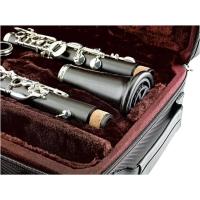 ベル内収納型のクラリネットスタンド。ベルと下管を個別に収納するケースにも対応したショートモデル。
