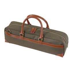 キャンバス地に牛革のレザーをあしらった、高級感のある手さげ鞄タイプのフルートケースカバーです。一般的なC足部管フルートケース、H足部管フルートケースのいずれも収納が可能です。ハードケースを倒すことなく横置きで収納できるため、安心して持ち運びいただけます。