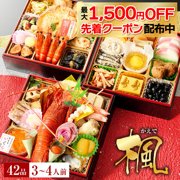 【まもなく終了】おせち 予約 2026 おせち料理 「楓」海鮮 御節 北海道 小樽きたいち 3人前 4人前 全42品 6.5寸 3段重 お節料理 送料無料 至高のおせち
