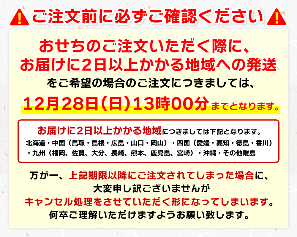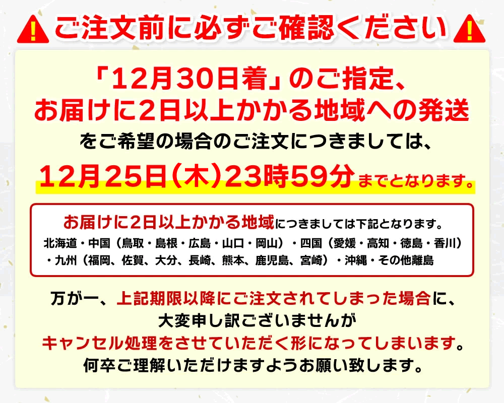 例)元旦お召上がりの場合→12月30日(月)着 推奨