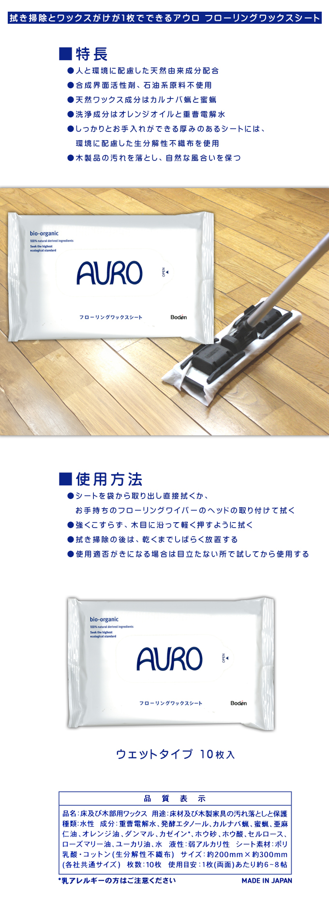 アウロ AURO ワックスシート 10枚×6個 フローリングシート 掃除 フロアワックス ウェットシート